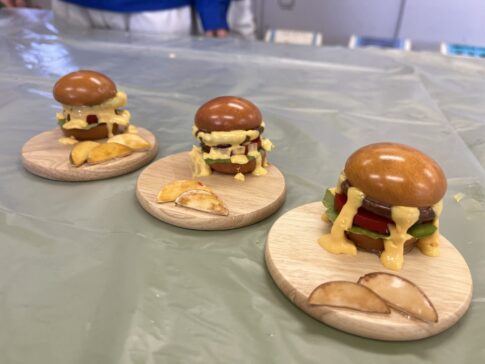 今日は都立高校で実習授業です。 作った食品サンプルは「ハンバーガースマホスタンド」。^^ おいしそうかわいい作品ができました。 今回の生徒さん達は、比較的チーズが控えめですね。^^ ハンバーガーの重ね方を少しづらしたり、...