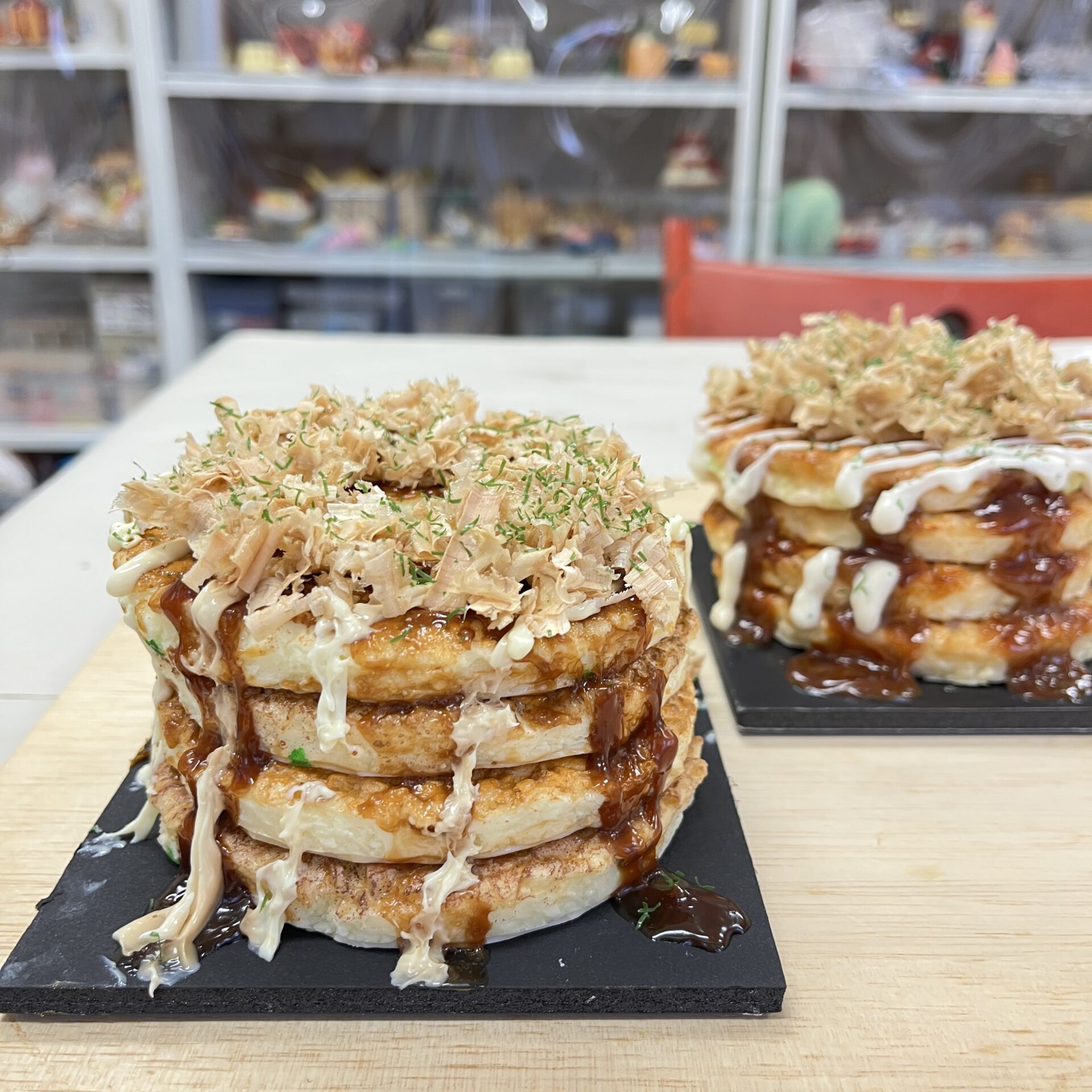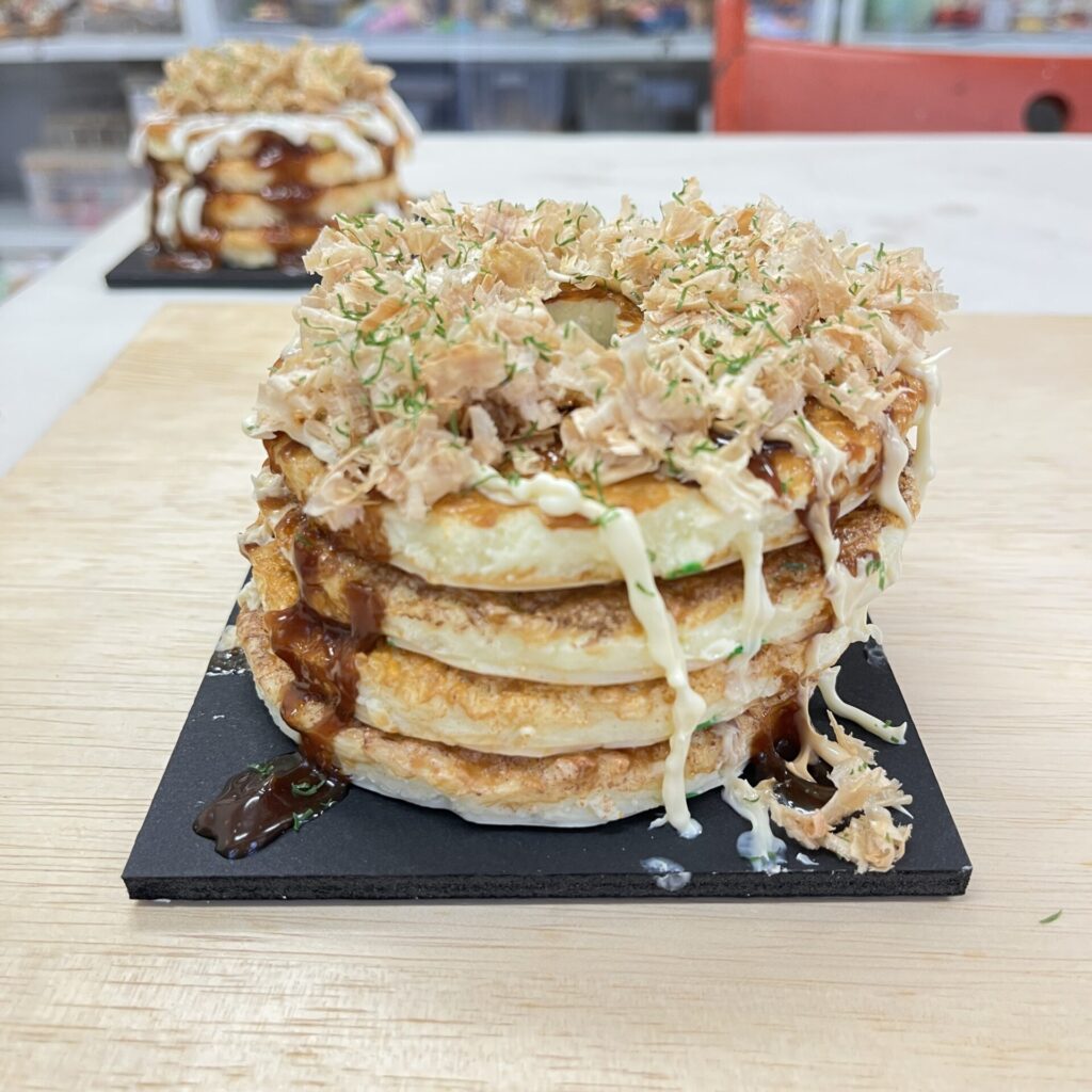 ハンドメイド2025.05.232級認定講座「お好み焼き貯金箱」食品サンプルアート「2級認定講座」開講しました。受講者さま、ありがとうございました!今回の作品は「お好み焼き貯金箱」です。お好み焼きを4段に重ねて、中にお金が貯められるようになっています。おいしそうなお好み焼きの貯金箱ができましたよ。^^たっぷりのマヨネーズとソース、もりもりのかつお節がステキですよね。ということで、受講者さま、おつかれさまでした!この貯金箱でお金を貯めて、お好み焼きを食べに行って下さいね。(かなりたくさん食べられるくらい貯まると思います。^^)