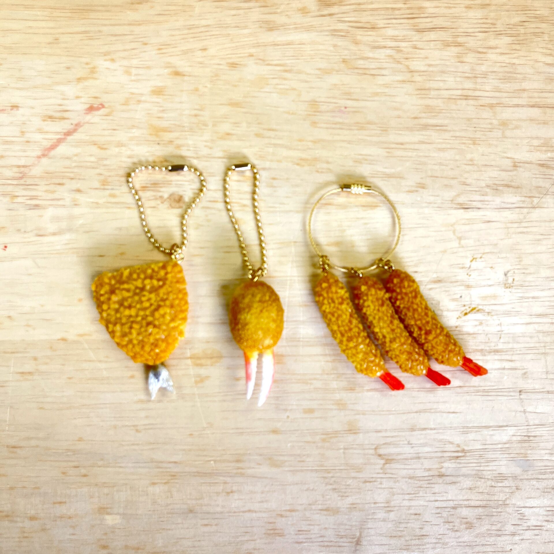 食品サンプルの揚げ物は人気デザインなので、イベントで販売しても、ワークショップを開催しても、どちらにしてもたくさんの人によろこんで貰えそうです。