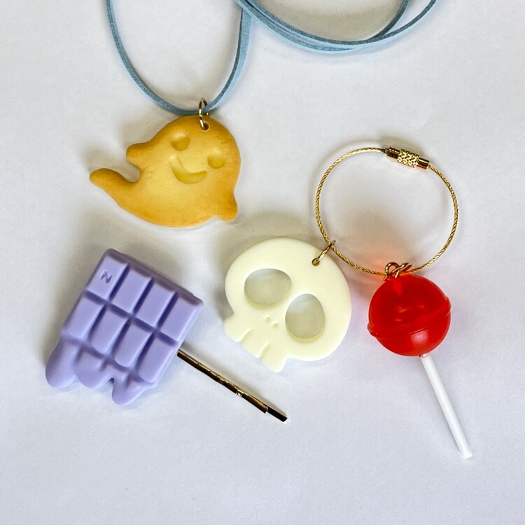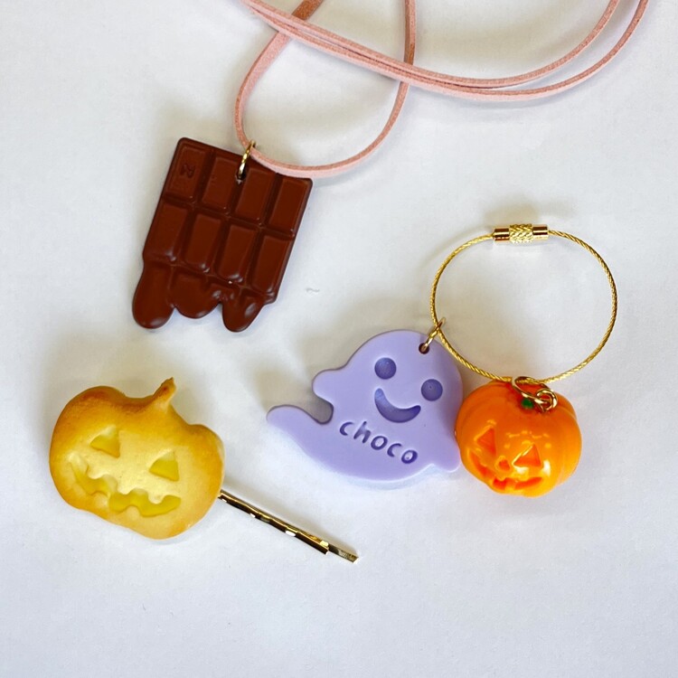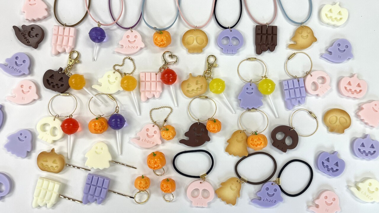 イベント出展2025.09.24食品サンプルのお菓子でハロウィンのかわいい小物を作ろう!「10月11日~13日 有明ガーデン」にて「ありはろ」に出店します。食品サンプルのお菓子でハロウィンのかわいい小物を作ろう!です。おばけ ガイコツ かぼちゃ チョコレート キャンディ、好きなモチーフを選んで、ネックレス、チャーム、ヘアゴム、ヘアピン、リングを作れます。お菓子の組み合わせを考えるのはとても楽しいですよ。^^現在、パーツを制作中ですので、途中経過をちょいちょい公開していきます。^^