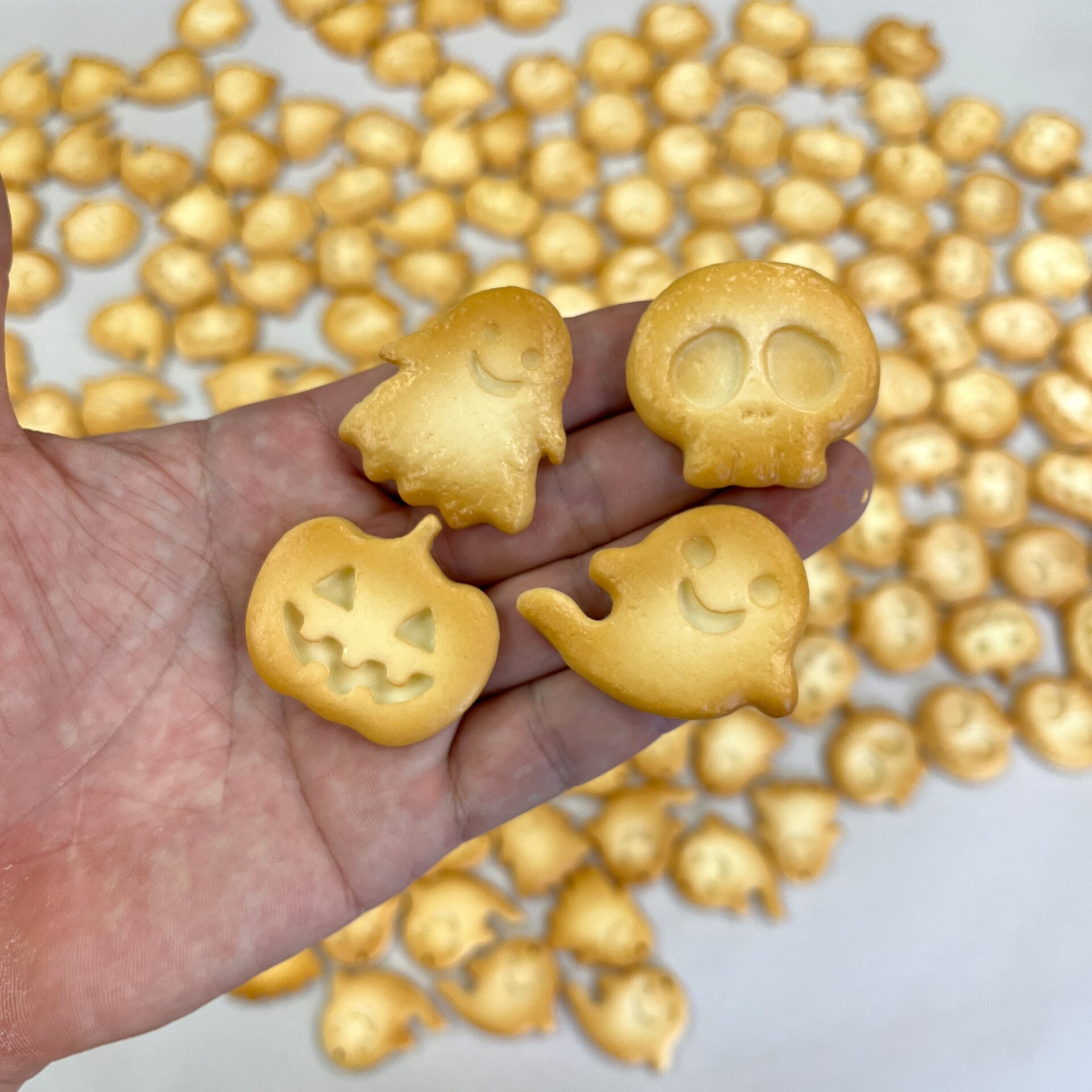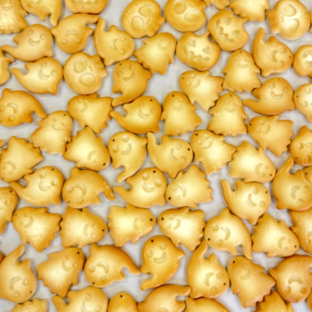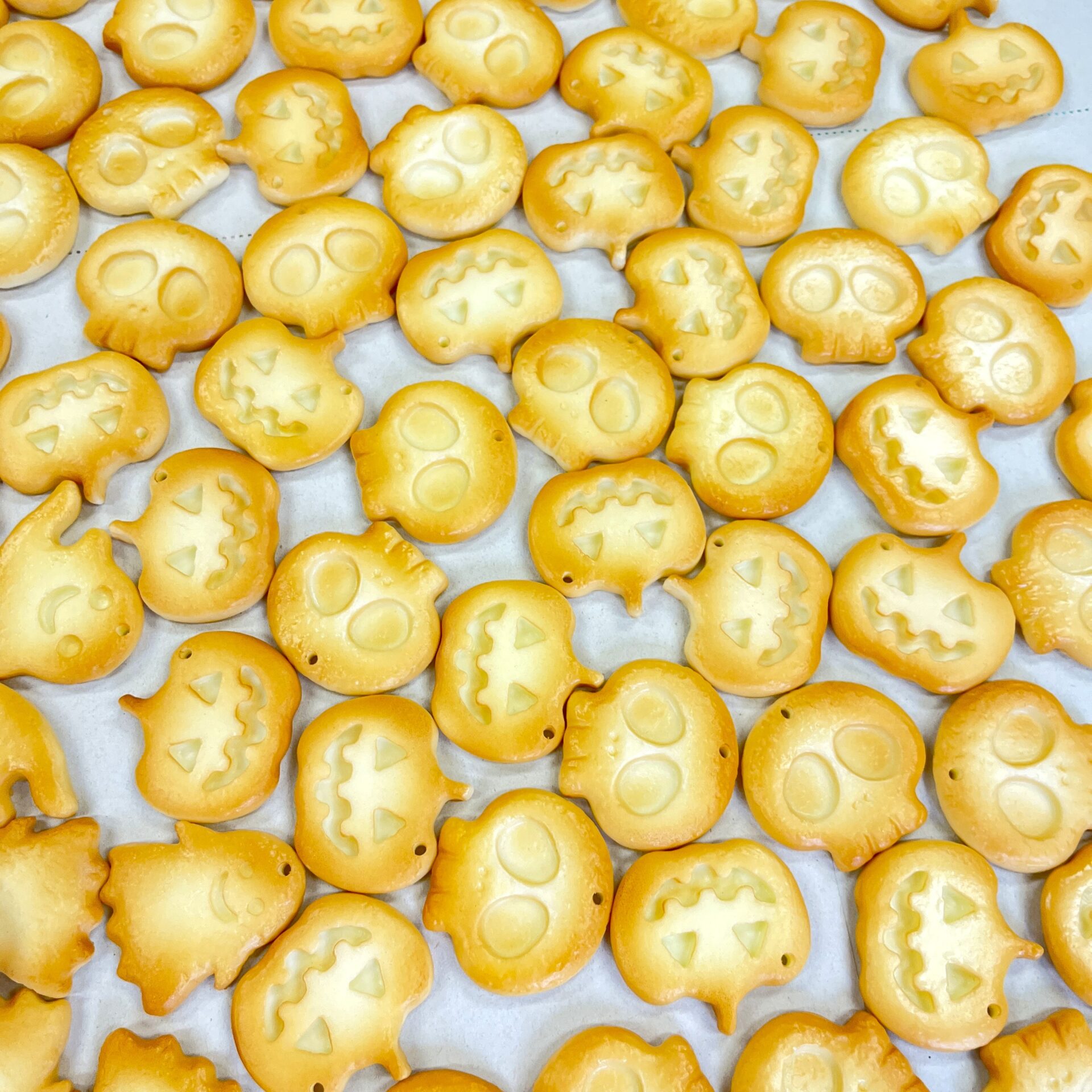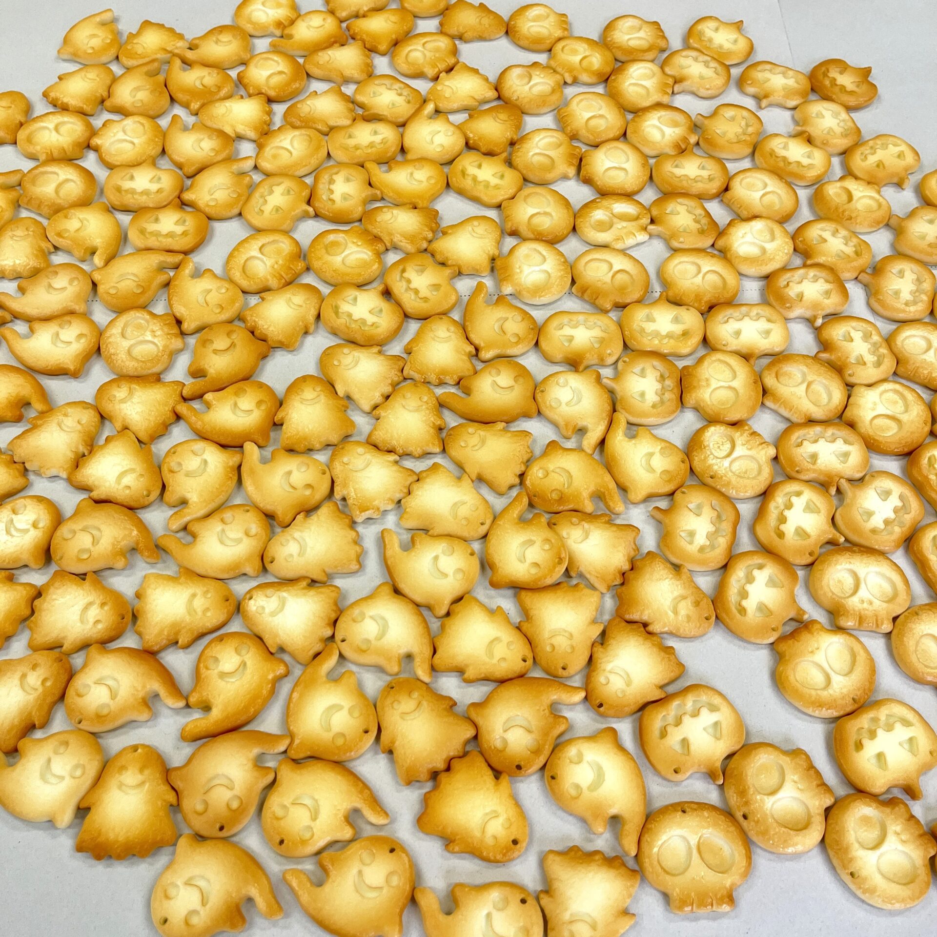 イベント出展2025.09.27ハロウィン「クッキー」10月11日~13日 ハロウィンイベント「ありはろ」、食品サンプルワークショップ用のパーツ、「クッキー」ができました。モチーフは4種類。ガイコツ、かぼちゃ、おばけ①、おばけ②焼く前のクッキー焼いたクッキーワークショップでは、好きなクッキーを選んでもらって、チャームとか、ネックレスとか、いろいろ作って楽しんでもらう予定です。^^