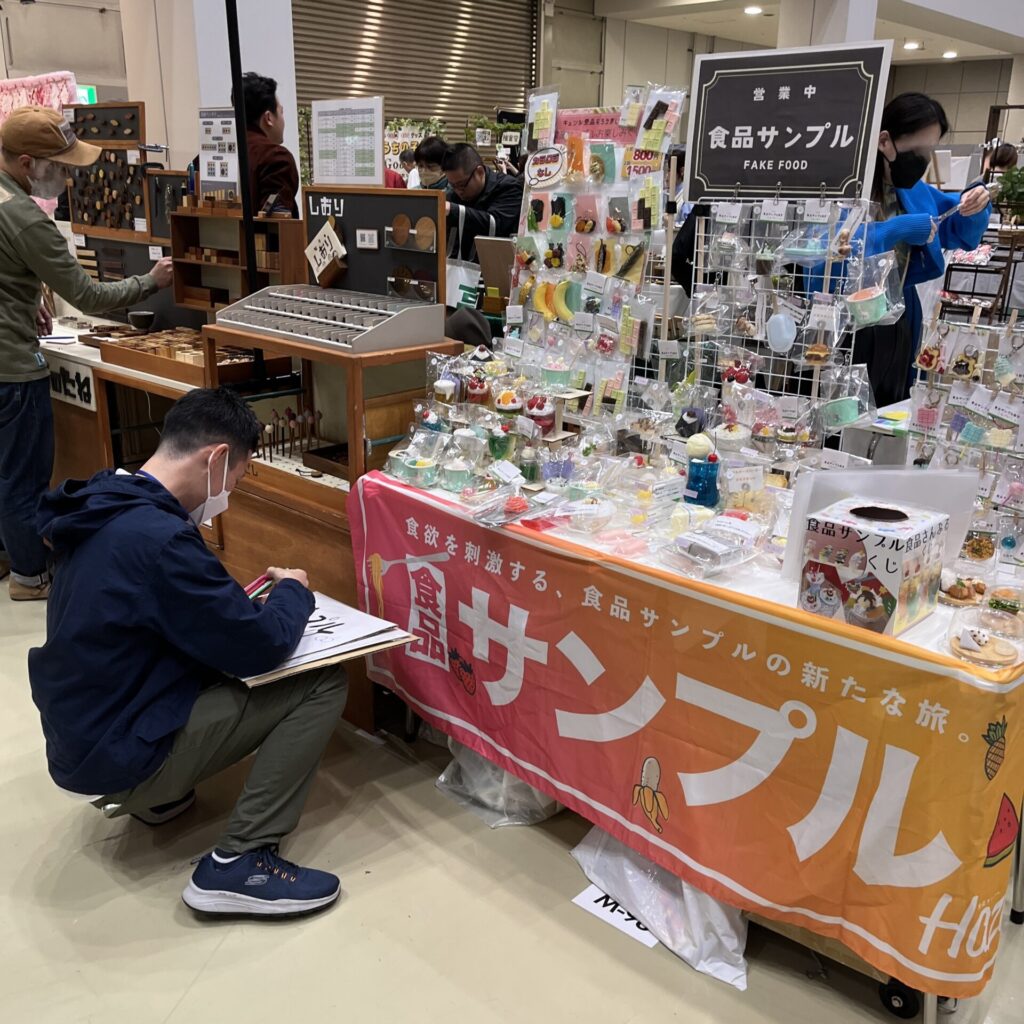 イベント出展2025.11.16デザフェス出店してます!デザフェス出店してます!参加した協会インストラクターのみなさま、おつかれさまでした!ご購入頂いたみなさま、ありがとうございました!今回は食品サンプルくじをメインにやっていますが、午後3時過ぎには用意した90個が完売しました。ありがとうございます!いやーーやっぱり、デザフェスは良いですね。楽しい。今日(11月16日)も出店してくじやります。昨日よりもくじの作品に大物を少し増やしますので、ぜひブースに遊びにきてくださいね。