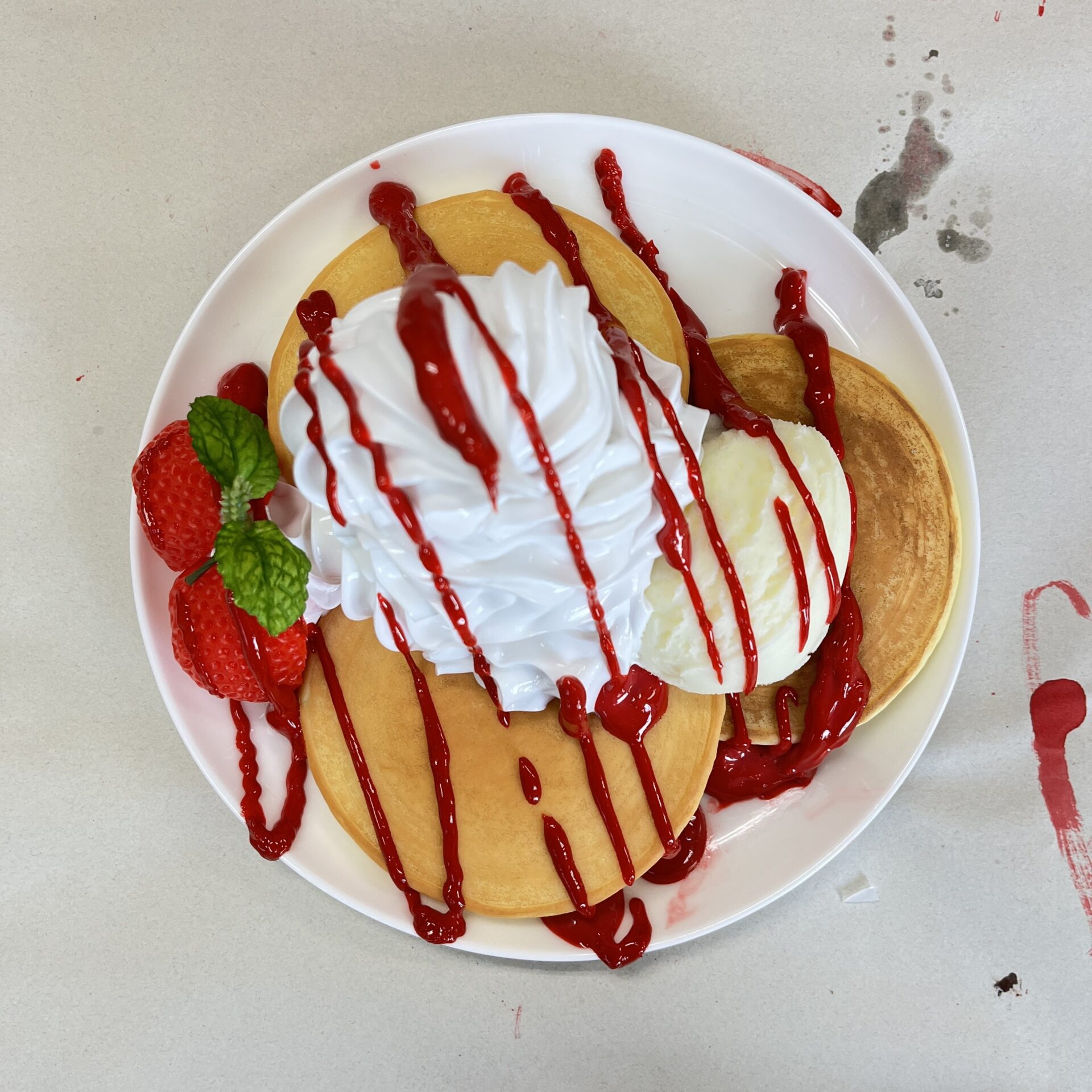 もりもりクリームのおいしそうなパンケーキができましたよ。^^